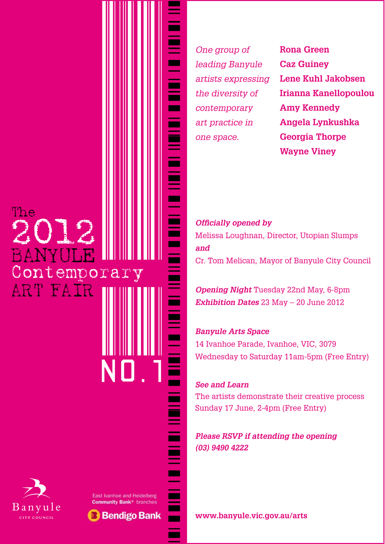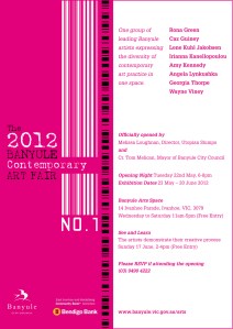 May I invite you to visit The 2012 Banyule Contemporary Art Fair at the Banyule Arts Space in Melbourne from 23 May – 20 June 2012.