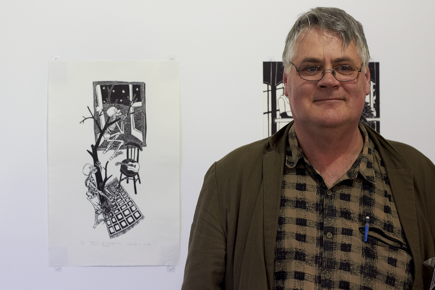 Woodcut prints by John Callaghan featuring in Near Neighbours at St Heliers Street Gallery (Photography by Jessika K)