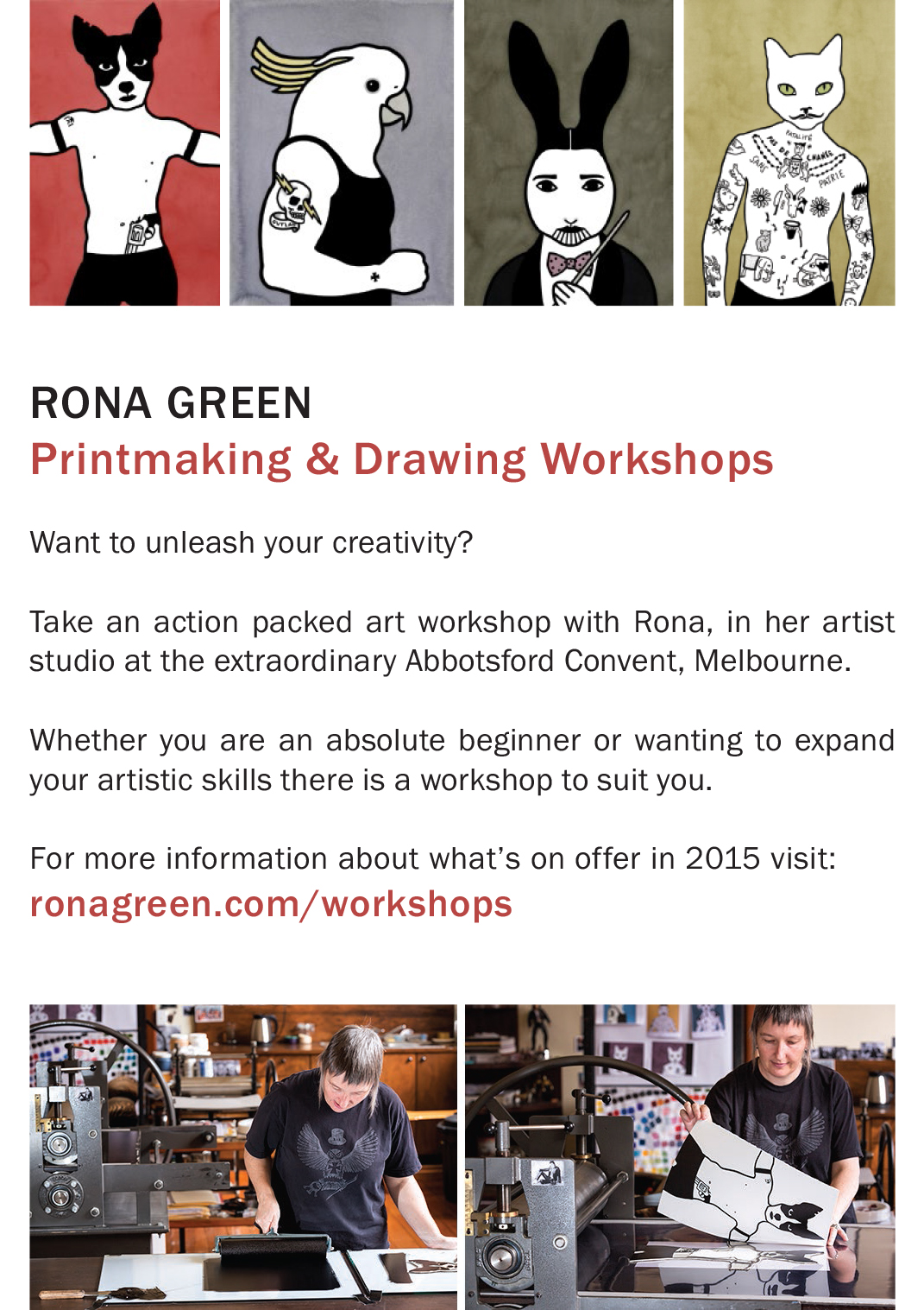 Posted: 3 March 2015 Filed under: Uncategorized | Tags: Abbotsford Convent, art workshops, drawing, Melbourne, printmaking, Rona Green 2 Comments