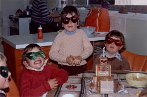One photo in particular has intrigued me so much that I have created three different interpretations – it is a snapshot of my guy’s birthday party, illustrated above.