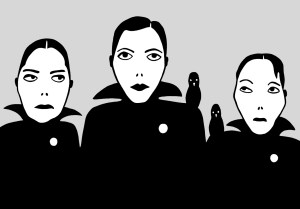 ‘Pearl’, ‘Vilém and Ludwig Jüngere’ and ‘Krzysztof and Rozhenko’, 2013, pencil and ink drawings on paper by Rona Green