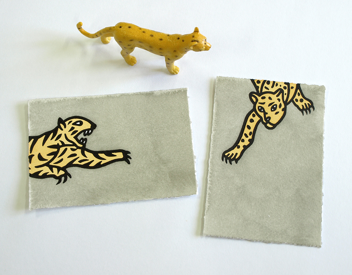 It is my pleasure to present the chance to win one of two miniature hand coloured linocut prints by yours truly.